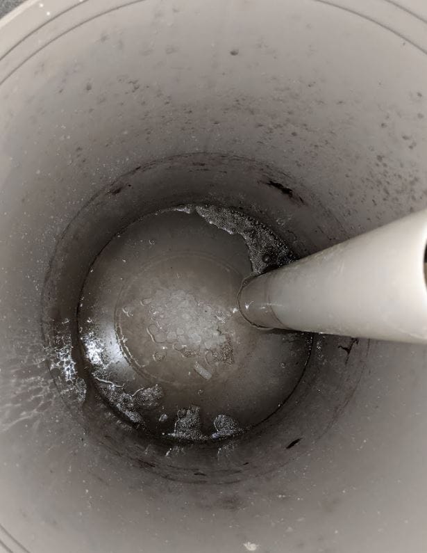 - Settling: Allow the brine to sit for several hours. A “floc” of precipitated iron will settle at the bottom.