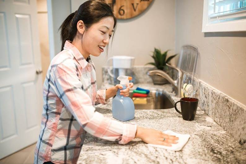 - Wipe down kitchen counters and sink
